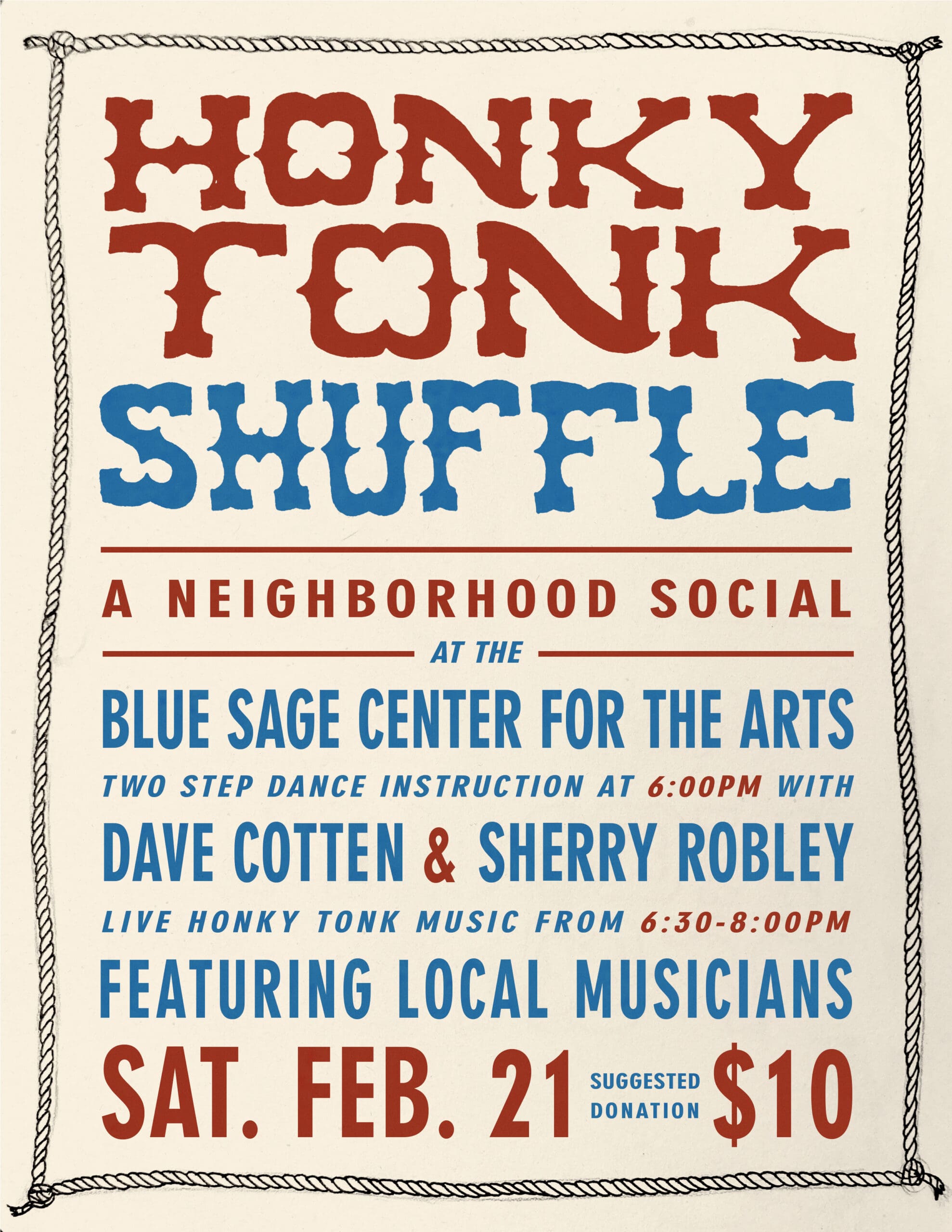 Feb 21 Honky Tonk Shuffle- Blue Sage Center for the Arts 6:00 pm - 8:00 pm Blue Sage Center for the Arts 226 Grand Avenue, Paonia Event Details Get Directions